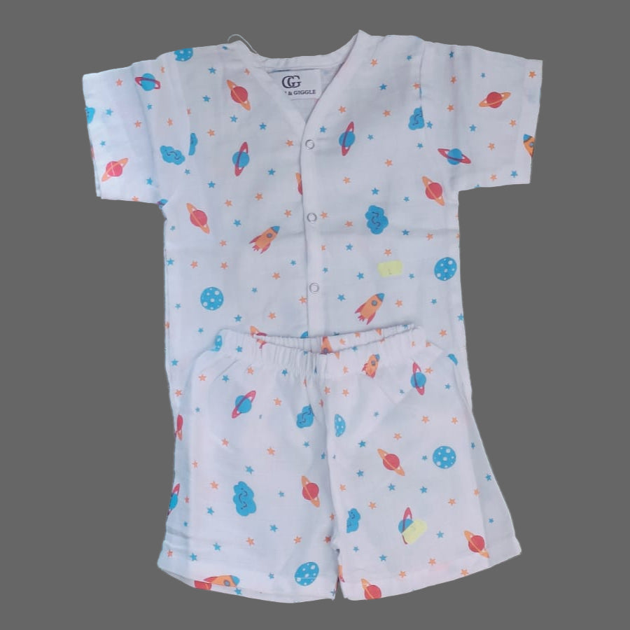 π Short-sleeve muslin jhabla with shorts β stylish & breathable for daily wear